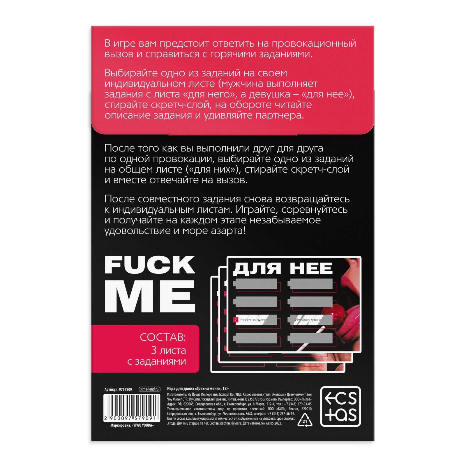 Трахни меня Секс игра для пар  со скретч-слоем, 18+