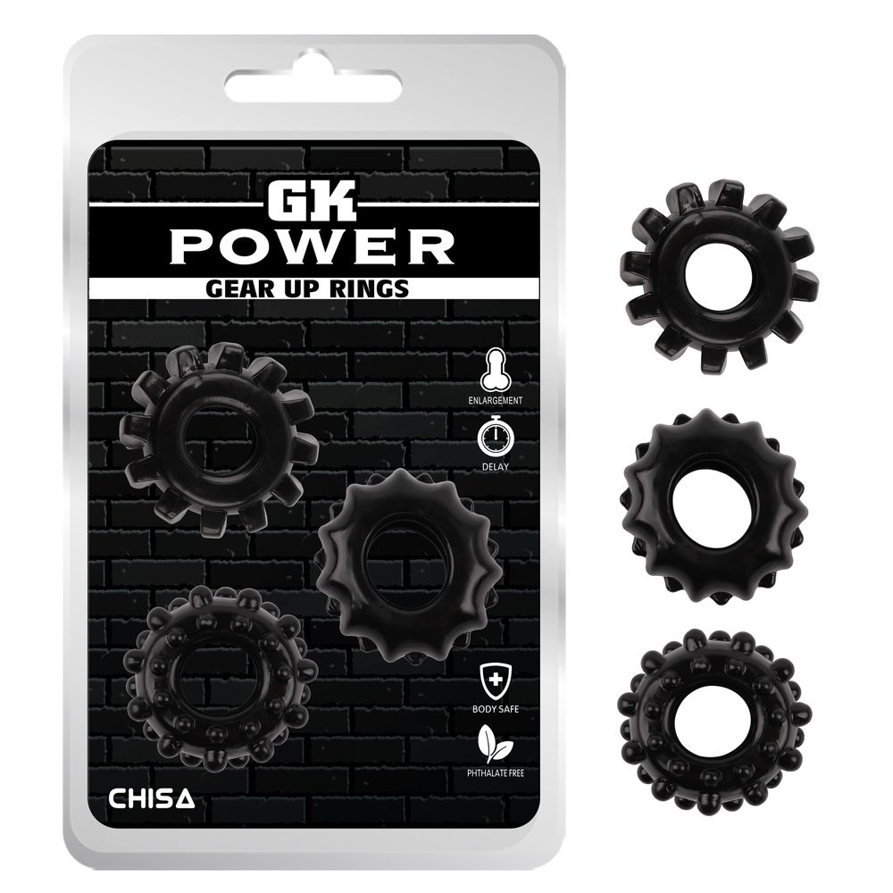 Набор из 3-х эрекционных колец GK Power Gear Up Rings - это необходимая вещь для каждого мужчины, который желает заниматься сексом долго, чувственно и качественно.