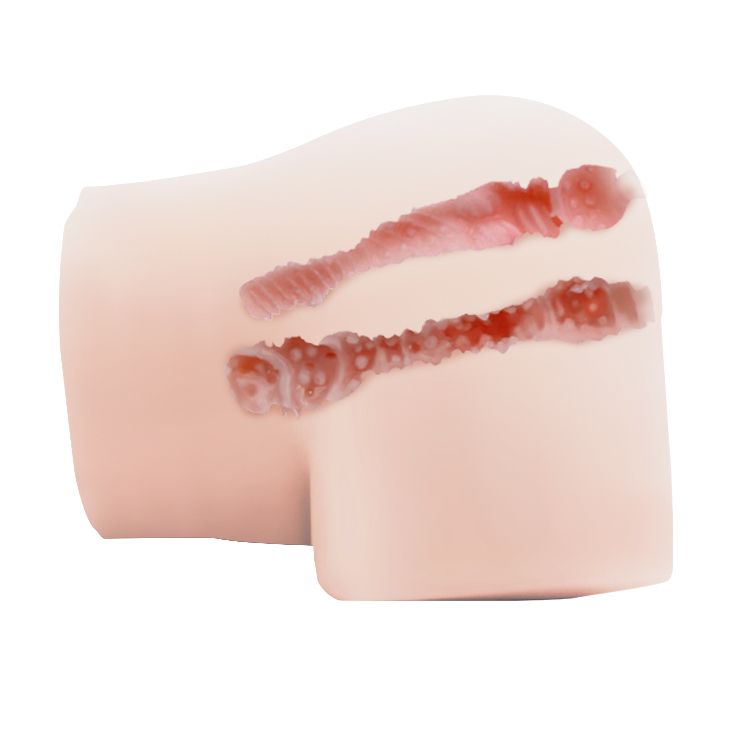 Данный мастурбатор изготовлен из бархатистого материала, который сложно отличить от нежной женской кожи. Реалистичный девайс выполнен в виде самых желанных частей женского тела. Два отверстия имеют супер-рельефную текстуру и обеспечат чувственные ощущения. Благодаря плоскому основанию его можно разместить на любой поверхности. Деликатный материал не содержит фталатов. Он хорошо растягивается и подходит для любого размера.