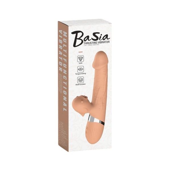 Вибратор Boss Series Basia Thrusting сделан из приятного на ощупь силикона. Этот качественный материал не содержит в составе вредных веществ, не вызывает аллергии и требует использования лубриканта только на водной основе. Основной отросток игрушки по форме напоминает реальный половой член с ярко выраженной головкой и заметным рельефом с венами. Отросток для ласк клитора сделан в виде птички. Ствол помимо вибрации имеет функции вращения, которые превратят его в миниатюрную секс-машину. Маленький отросток имеет ловкий язычок, который будет имитировать оральные ласки для клитора.