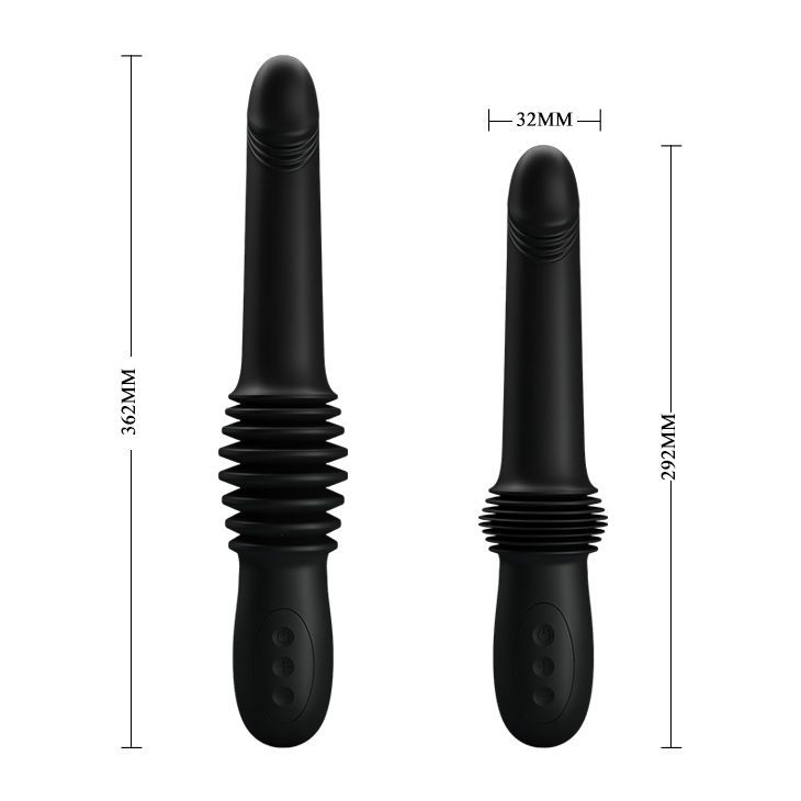 Многофункционнальный вибромассажер с возратно-поступательными движениями. 3 режима увеличения длины до 70 мм. Размер: длина 292 мм, при самом большом увеличении 362 мм, диаметр 34 мм