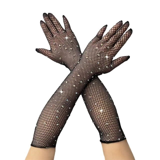 Перчатки в сетку со стразами