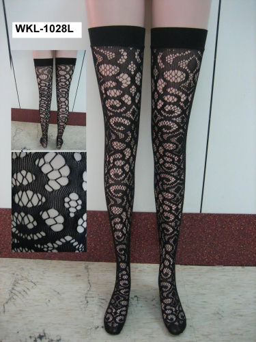 Черные чулки с кружевным рисунком выделяются из большинства, благодаря своему уникальному стилю.