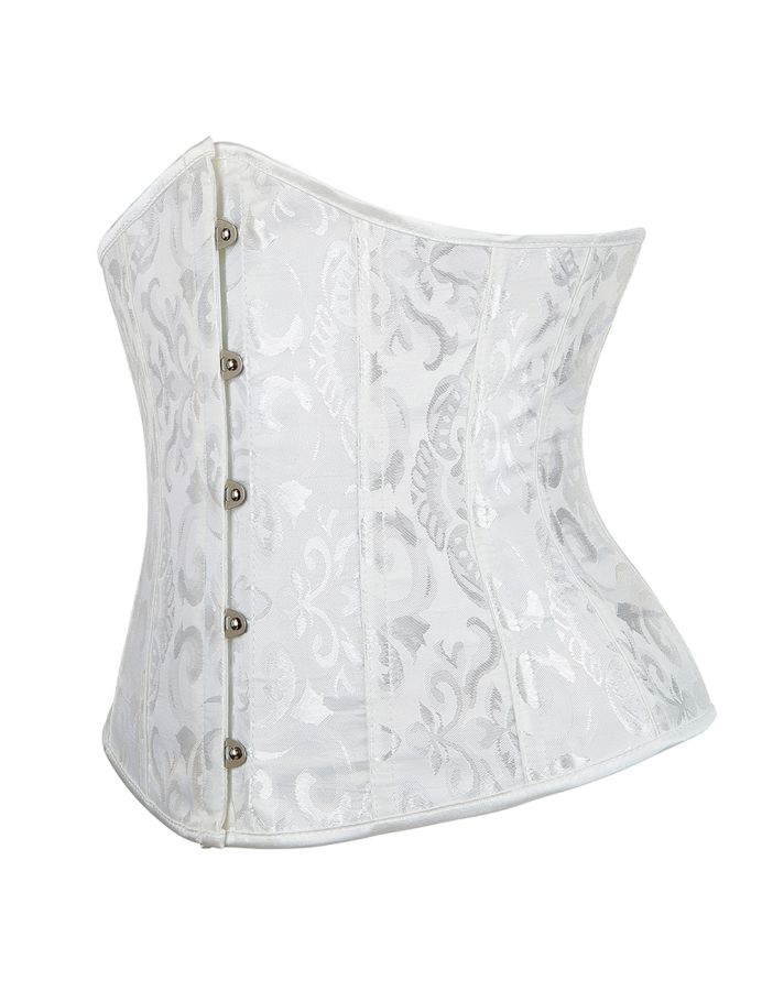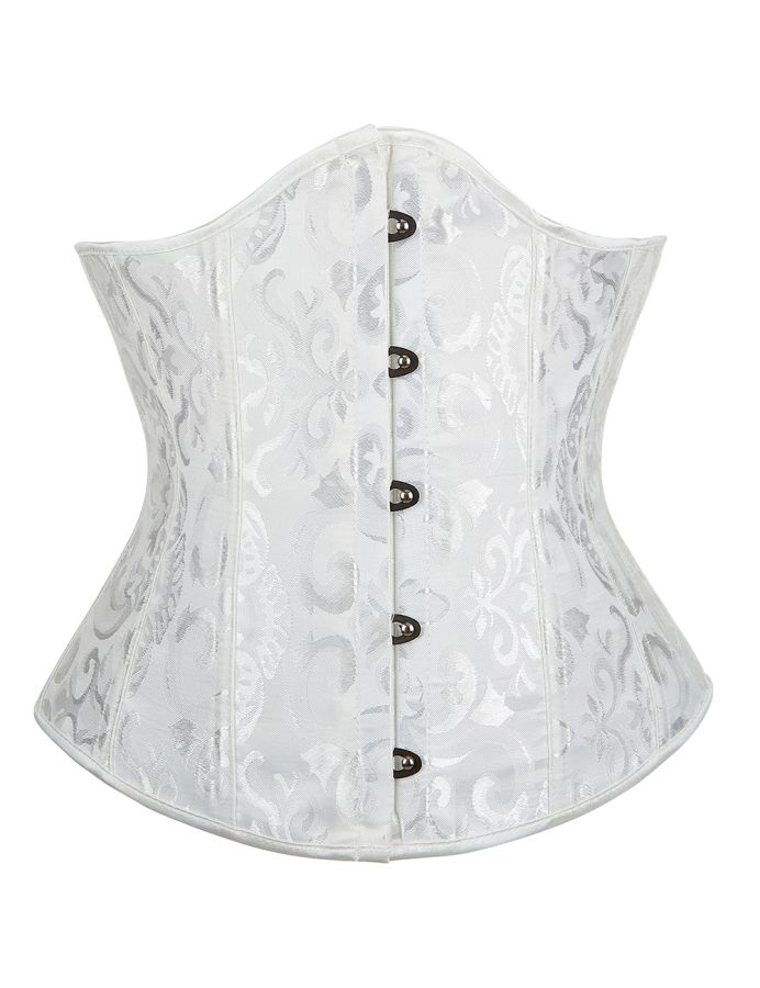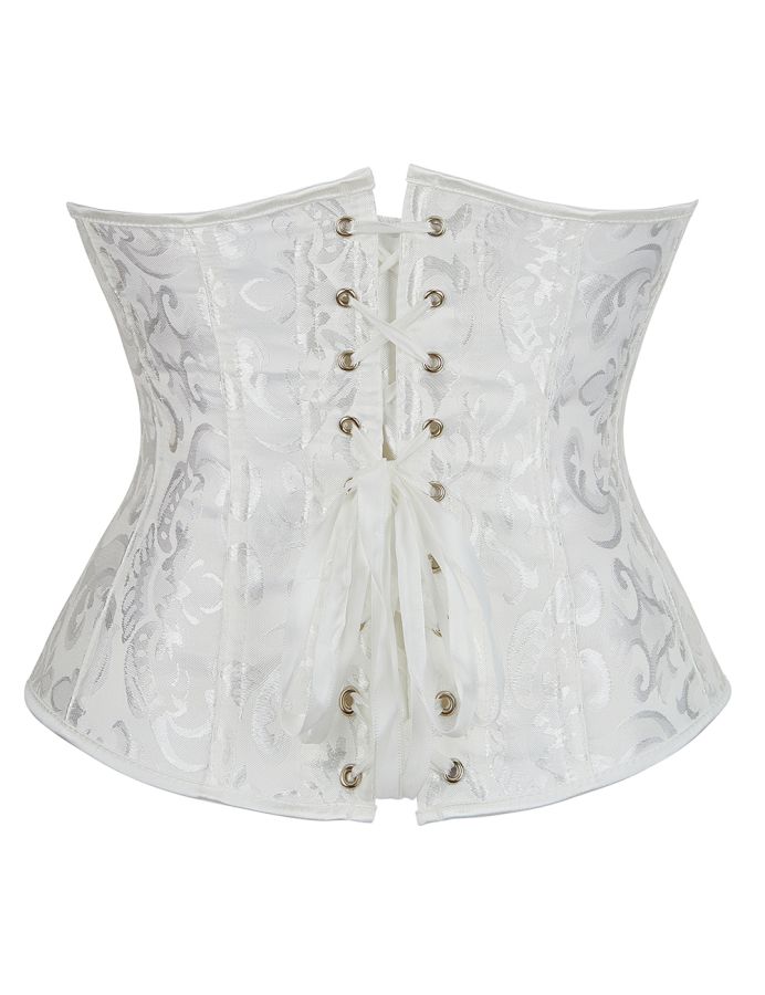 Этот корсет в нежном белом цвете с перламутровым переливом станет центральным элементом вашего образа. Изысканный рисунок, напоминающий морозные узоры, мягко мерцает при свете, создавая эффект роскоши и утонченности. Классическая шнуровка на спине позволяет идеально подогнать силуэт по фигуре, подчеркивая талию и создавая соблазнительные линии.