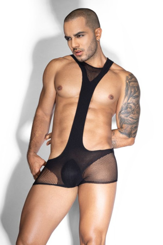 Эффектное мужское боди из полупрозрачной сетки — смелый выбор для тех, кто любит внимание и уверенно подчёркивает свою сексуальность. Асимметричный крой с открытой грудью и акцентной линией визуально выделяет торс, подчёркивая рельеф и мужественность фигуры. Эластичный материал мягко облегает тело, обеспечивая комфорт и свободу движений, а сетчатые вставки добавляют образу дерзости и провокации.