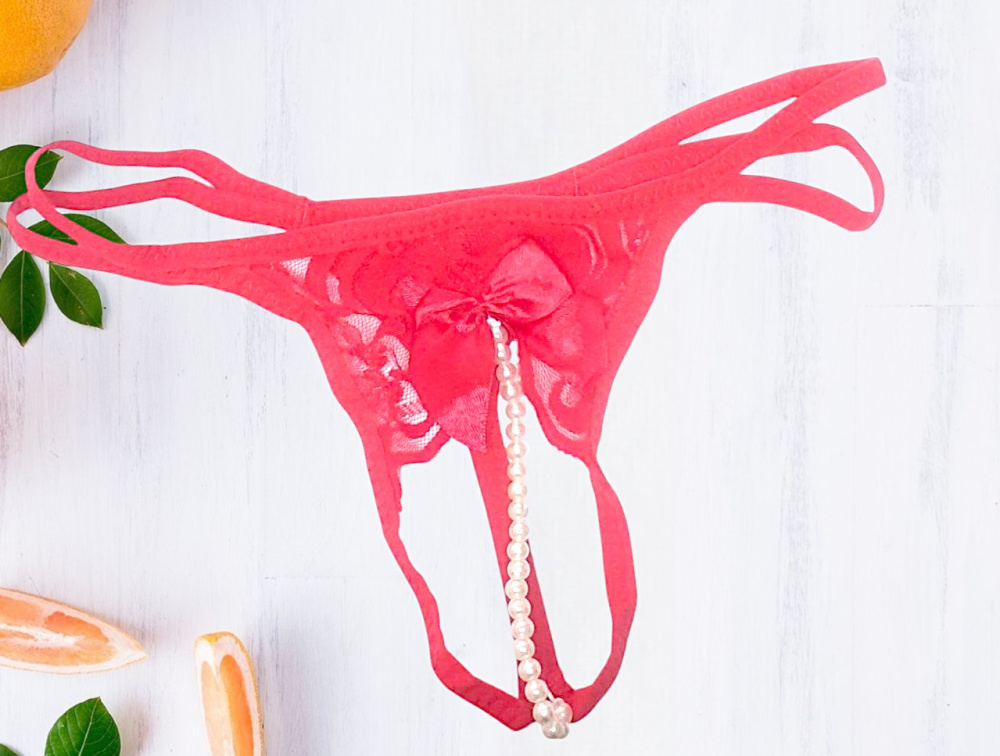 Трусики с бусами "Рearl" красные