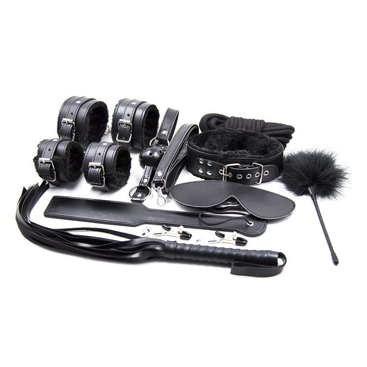 БДСМ-набор. Стильный чёрный комплект для игр, состоящий из 11-ти BDSM-атрибутов.