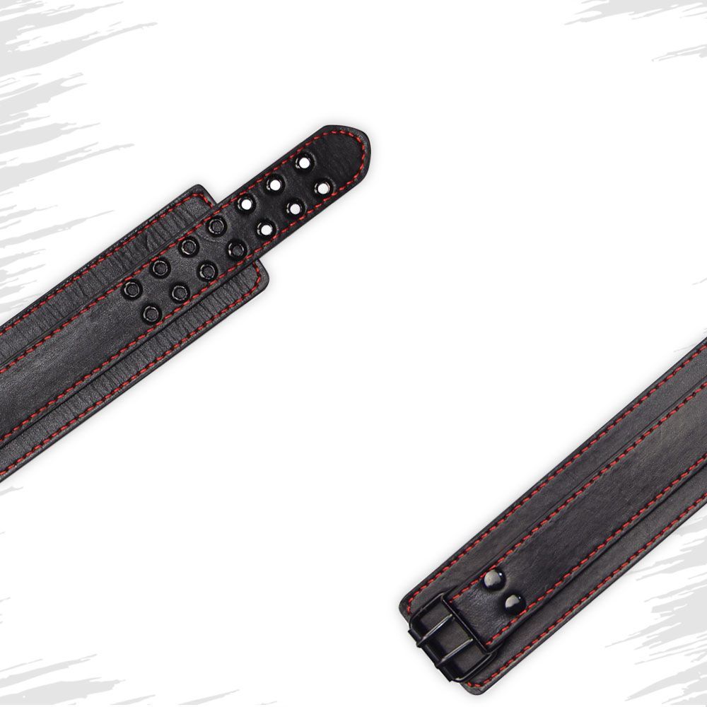 Черный ошейник с красной прошитой строчкой. Застегивается ошейник с помощью пряжки, регулируется по объему при помощи ремня на застежке, расположенного сзади, так же имеется закрепленный на карабин поводок в виде цепочки. Ошейник сделан из мягкой искусственной кожи, и легко регулируется по размеру при помощи застежки. Размеры: ошейника регулируется по объему от 35,5 до 51 см., Длина поводка 56 см.Материал: искусственная кожа, металл