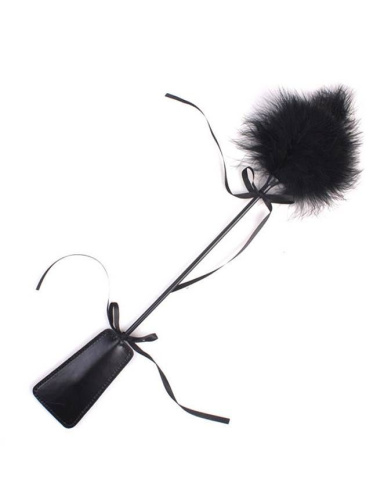 Стек имеет две рабочие стороны, которые пригодятся в Ваших сценариях БДСМ-игр. С одной стороны Вас ждет поверхность для шлепания, которая может легко украсить кожу Вашего партнера сексуальными алыми узорами. А с другой – метелочка из мягких перышек, которыми можно нежно касаться мест ударов.