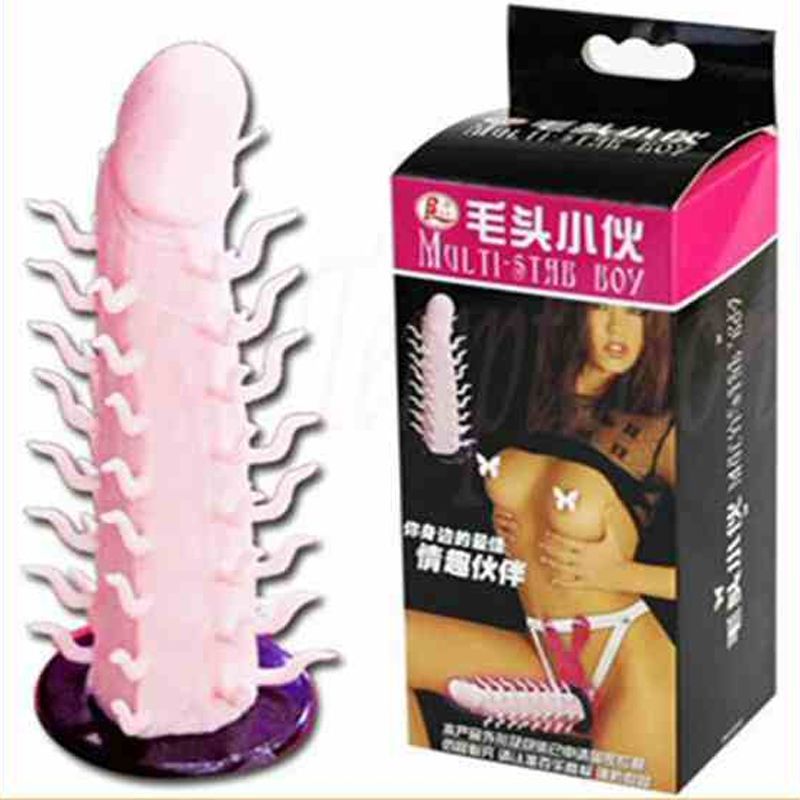 Страпон женский. По всему стволу игрушки расположены элостичные усики. Длина: 14 см. Диаметр: 3 см.